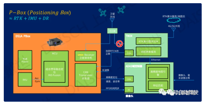 虽然某些车企在自研组合导航算法,不过有更多主机厂会选择一家集成商将卫导、惯导和组合导航算法集成在一起提供,也就是俗称的“P-Box”(定位盒子),还有些会把高精地图也集成其中,称为“地图盒子”(HD MAP BOX)。