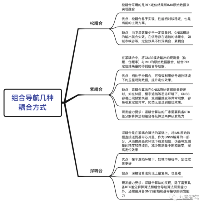 组合导航的几种耦合方式,信息来源:九章智驾根据公开信息与专家访谈信息整理